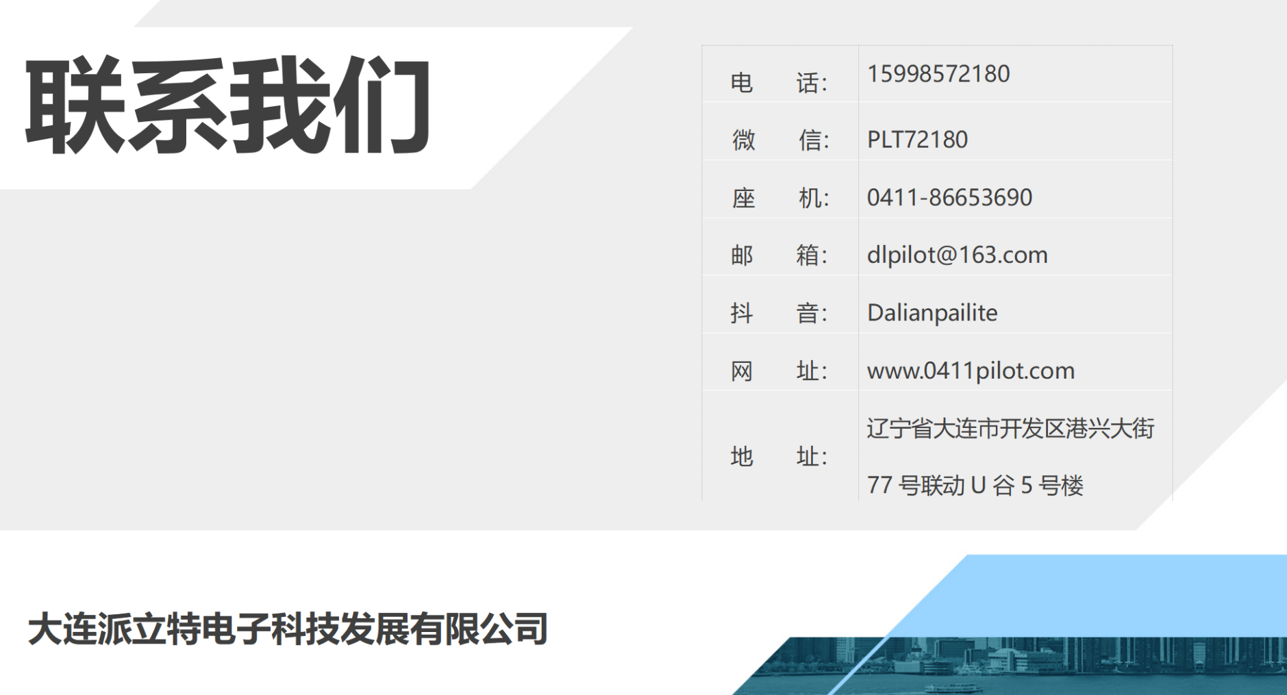 Copyright © 大連派立特電子科技發展有限公司 版權所有 遼ICP備10200612號-1 網站地圖 全國服務電話:18342687558 傳真: 手機:18342687558 工廠:遼寧省大連市開發區海青街道聯東U谷77-5號 公司:大連派立特電子科技發展有限公司